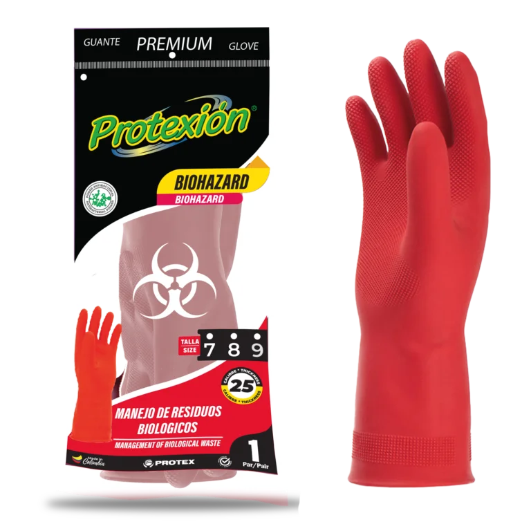 Guantes premium elaborados 100 % en látex natural, monocolor, con poder antibacterial que evita la propagación de bacterias, labrado profundo en palma y dedos para un mejor agarre, clorinados, cómodos y flexibles, calibre parejo desde la punta de los dedos hasta el orillo lo que los hace súper resistentes y seguros, diseño anatómico y forma curva en los dedos para reducir la fatiga de las manos durante su uso, orillo en la manga que evita el desgarre, protege sus manos durante la ejecución de labores que impliquen la manipulación de residuos biológicos que puedan ser contaminantes y perjudiciales para la salud, ideales para el sector hospitalario, veterinario y de aseo institucional.